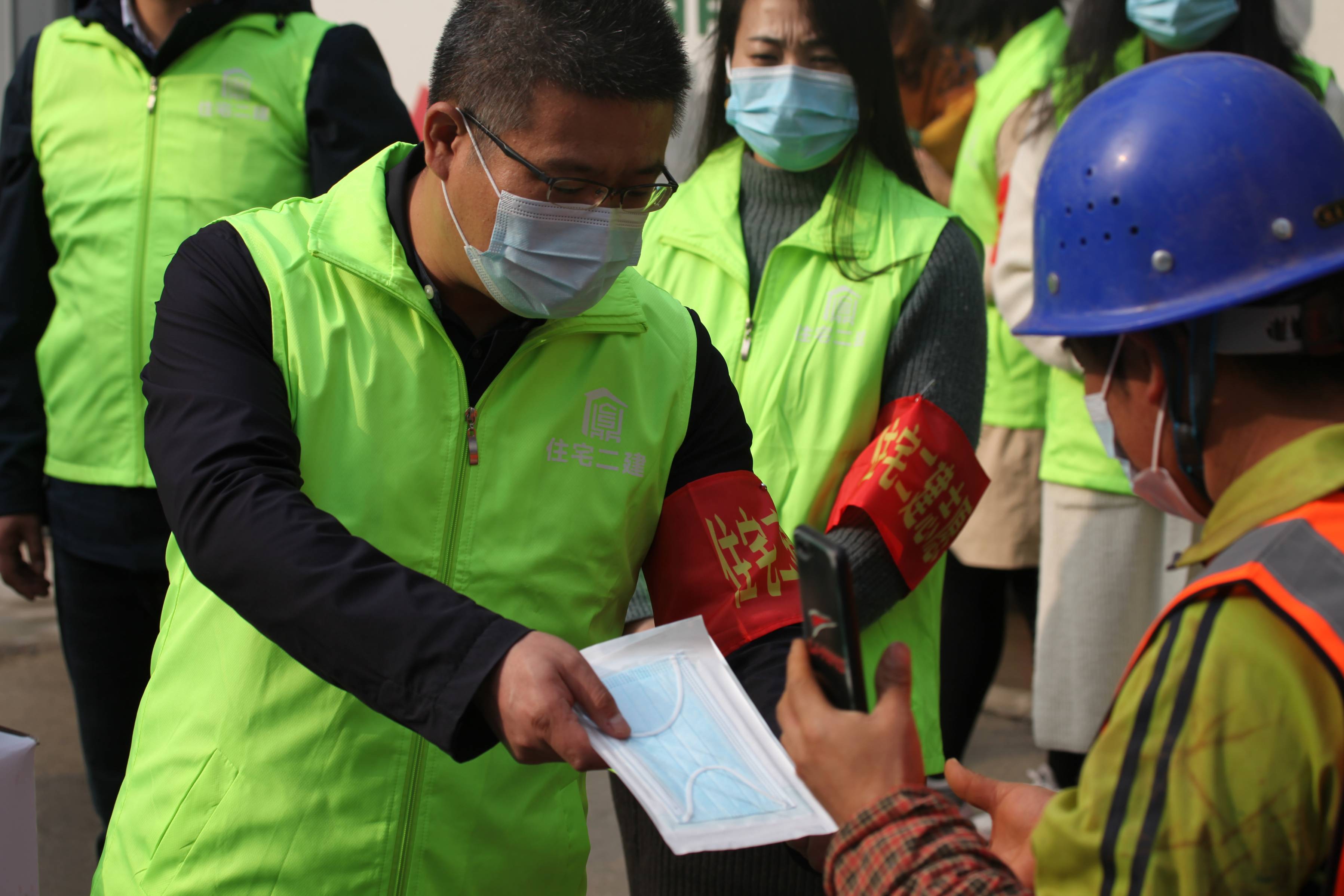 本次活動由公司副經理杜軍同志和紀委書記尚進同志帶隊,志愿者一行16人,首先來到米家崖保障房項目工地,向項目工人宣傳了在當前西安嚴峻的疫情防控形勢下,做好常態化疫情防控的重要意義,并組織工人學習各項防疫知識,例如:如何正確佩戴口罩以及七步洗手法等各項科學防控保護措施,倡導大家提升疫情防護的警惕性,切實做好個人日常防護,防止疫情傳播蔓延。同時,志愿者還為工人們送上口罩、酒精、消毒液等防疫物資,叮囑大家做好自身防疫保護。
