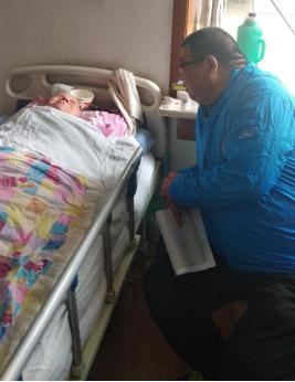 還有86歲的樊長奎老人,他不像王文謨老人精神狀態那般好,三年前因患腦梗一直癱瘓在床,生活不能自理,在樊長奎老人家中,柴紅軍坐在床邊握著老人的手噓寒問暖,詳細詢問、了解老人在醫療、生活等方面的情況,希望老人家身體健康,并向他送上了節日祝福和慰問。
